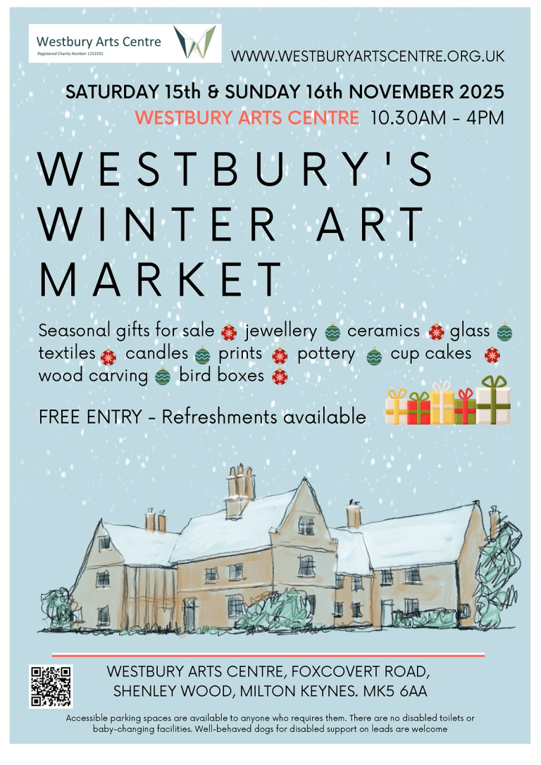 November 15th-16th 2025: Westbury's Winter Art Market. Westbury Arts Centre, MK5 6AA. 10.30-4pm